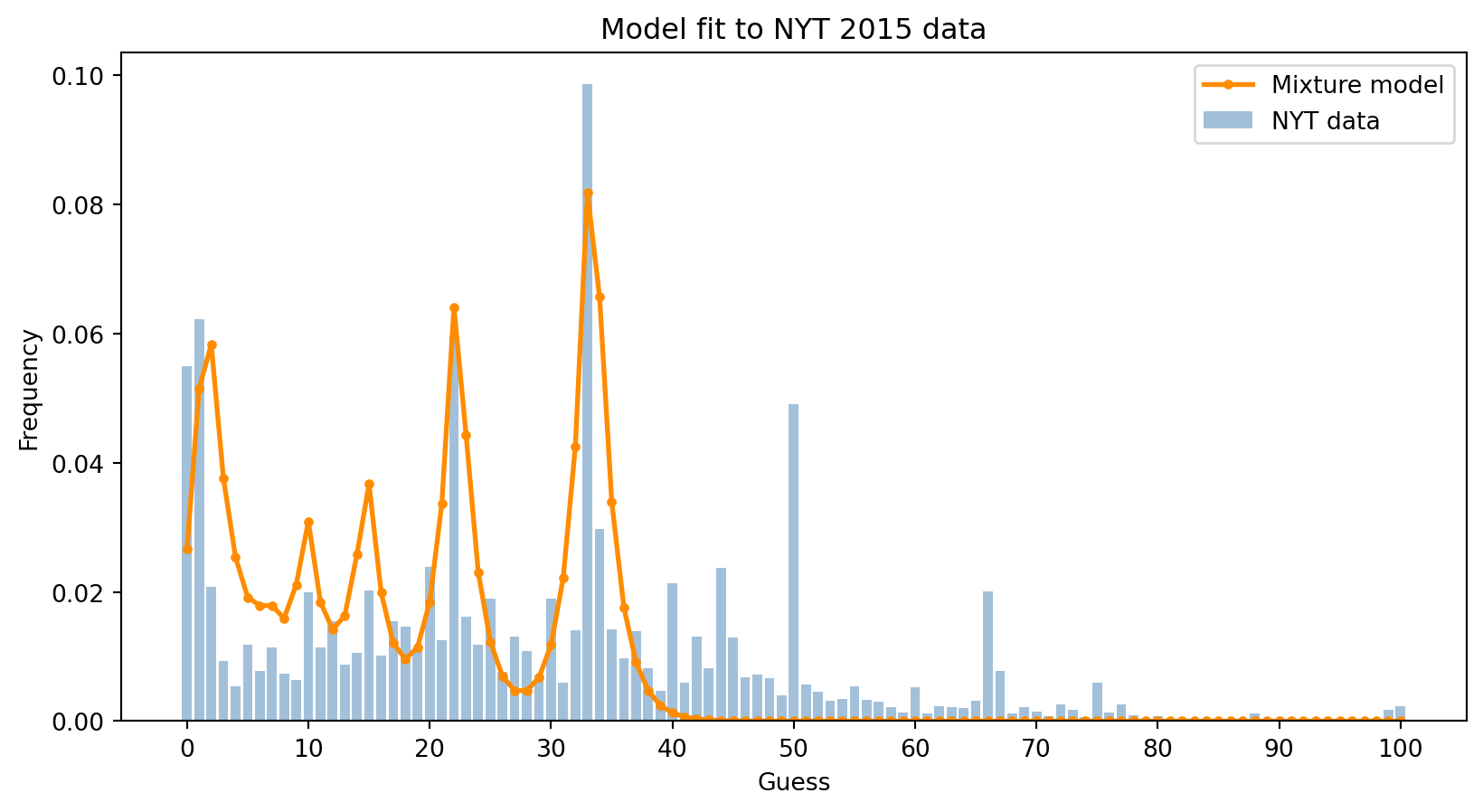In this tutorial, we will model a “level-k” strategy for this game, and then fit the model’s predictions to real data collected by the New York Times.